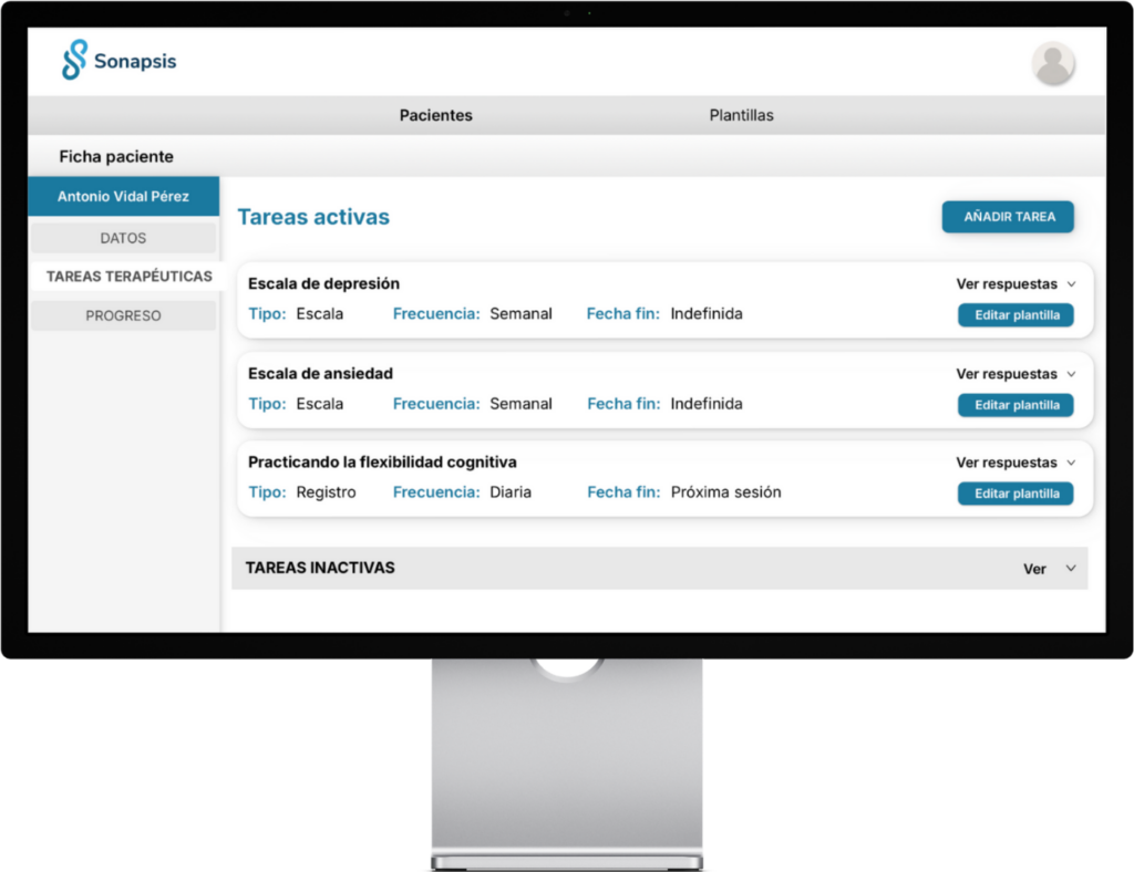 Sonapsis nace para apoyar a los psicólogos en su labor y facilitar que el proceso terapéutico continúe también fuera de la consulta, contribuyendo a fortalecer y aplicar la práctica psicológica a través de la tecnología.